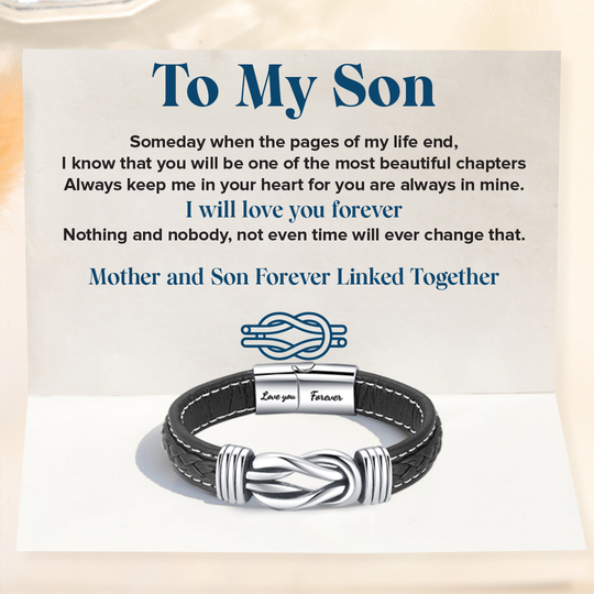 The “Mother and Son Forever Linked Together” braided leather bracelet